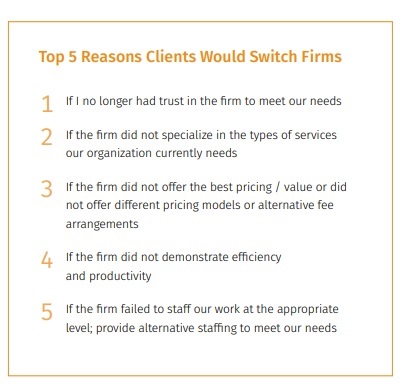 The Top 5 reasons cited as to why a client might leave your firm are: