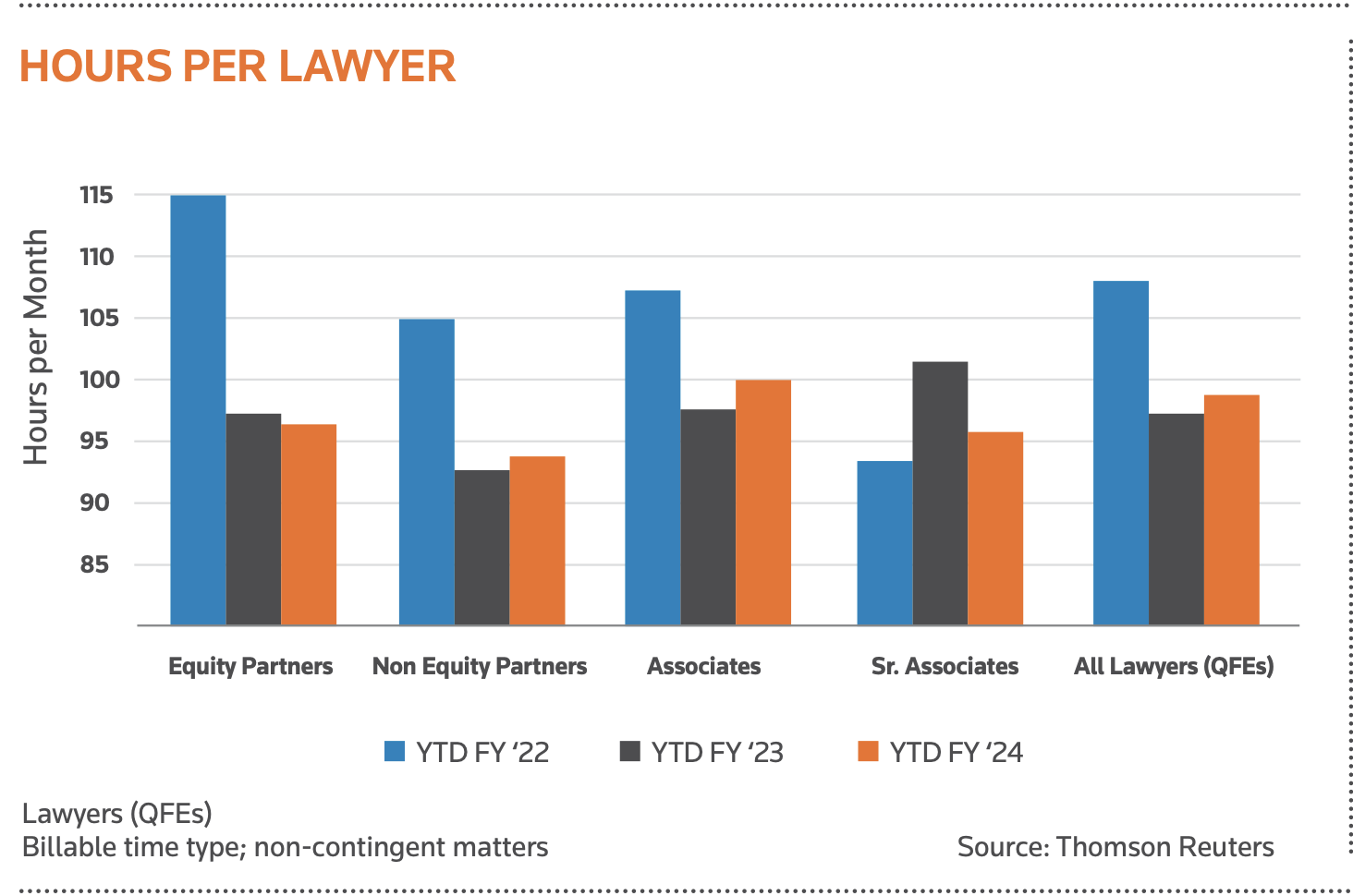 As the chart above indicates, leverage between partners, senior associates, associates and lawyers still looks out of shape when compared against firms in other jurisdictions.